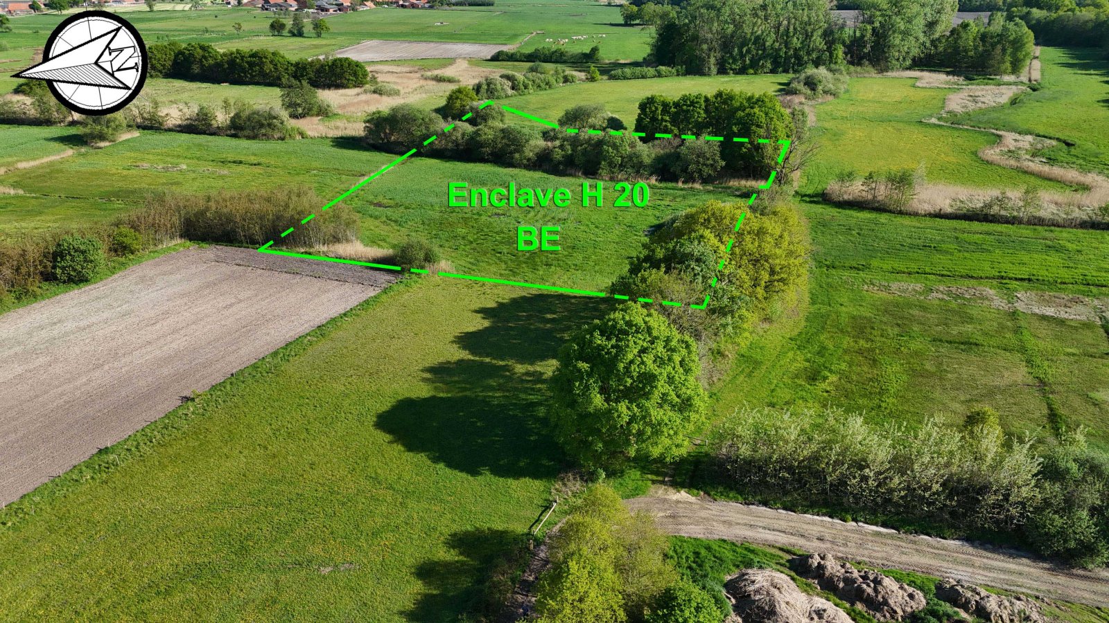 H20 is a quasi-rectangular enclave, located in a stream valley at 42.85 meters from a field road. The enclave includes a field through which the watercourse Markske runs from east to west. This stream splits the plot into a large northern and a small southern part. There is a lot of reed growing there. H20 is located at 77.66 meters from the main border.